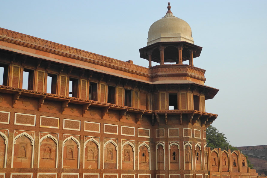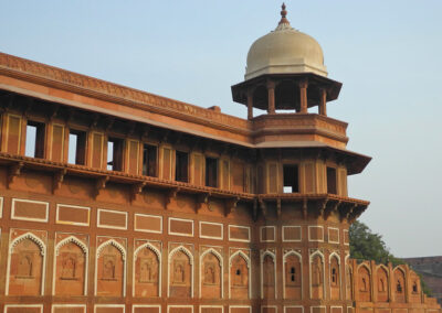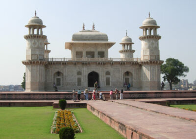 Weitere Sehenswürdigkeiten in der sonst sehr lauten, hektischen und durch Luftverschmutzung geprägten ehemaligen Hauptstadt sind das Rote Fort und das architektonische Juwel Itimad-ud-Daula-Mausoleum.
