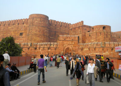 Die nordindische Stadt Agra ist vor allem bekannt durch das wohl berühmteste und meistfotografierteste Bauwerk der Geschichte, dem Taj Mahal. Erbaut wurde das 58m hohe Grabmal vom Mogulfürsten Shah Jahan für seine Gemahlin Mumtaz Mahal Mitte des 17. Jahrhunderts.