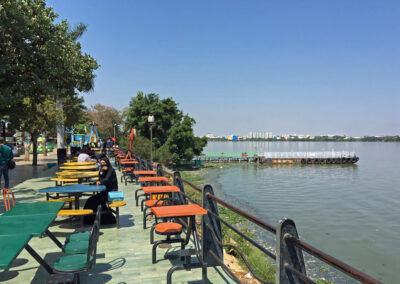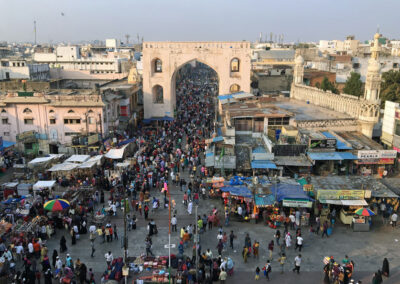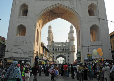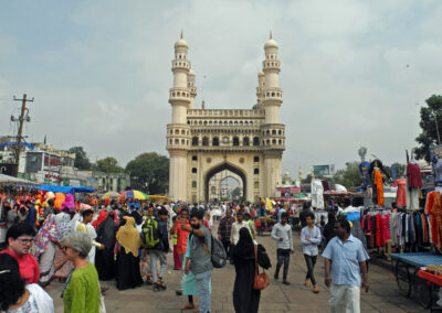 Auch für «geübte» Indien-Touristen ist das Verkehrsaufkommen in Hyderabad — vor allem im Norden — ungewöhnlich, Lärm und Gestank von frühmorgens bis spät in die Nacht… Besser ist es südlich des Flusses Musi in der Altstadt und hier befinden sich auch die grössten Attraktionen: Char Minar, Mecca Moschee, Chaumohalla-Palast und der riesige Bazaar. Ruhig und erholsam ist an den Ufern des Hussain Sagar, einem hübschen See inmitten dessen sich eine riesige Buddha-Statue befindet. Sehenswert sind auch der Birla-Mandir, der Public Garden, der Lumbini Park und die Ramoji Filmcity und ausserhalb der Stadt das Golconda Fort und die Qutb-Shahi-Gräber.
