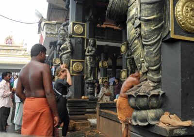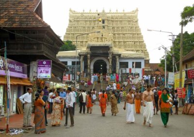 Thiruvananthapuram (oder Trivandrum) ist die Haupstadt des Bundesstaates Kerala und liegt ganz im Süden. In der mit knapp 800’000 Einwohner bewohnten Stadt leben vor allem Hindus, gesprochen wird malayalam und englisch. Die Stadt ist Ausgangspunkt für Reisen nach Kanyakumari, Kovalam, Varkala etc., hat aber auch ein paar ausserordentliche Sehenswürdigkeiten. Der Padmanabhaswamy-Tempel ist für Nicht-Hindus nicht zugänglich, aber die Figuren am Tempelturm (Gopuram) sind eindrücklich, unmittelbar daneben liegt der Puttan-Malika-Palast, die Residenz des Königreichs Travancore. Das Napier-Museum bietet einen Einblick in Malerei und Kunsthandwerk, ganz in der Nähe liegt der Zoo, der Eintritt — und das ist in indischen Zoos nicht überall so — lohnt sich!